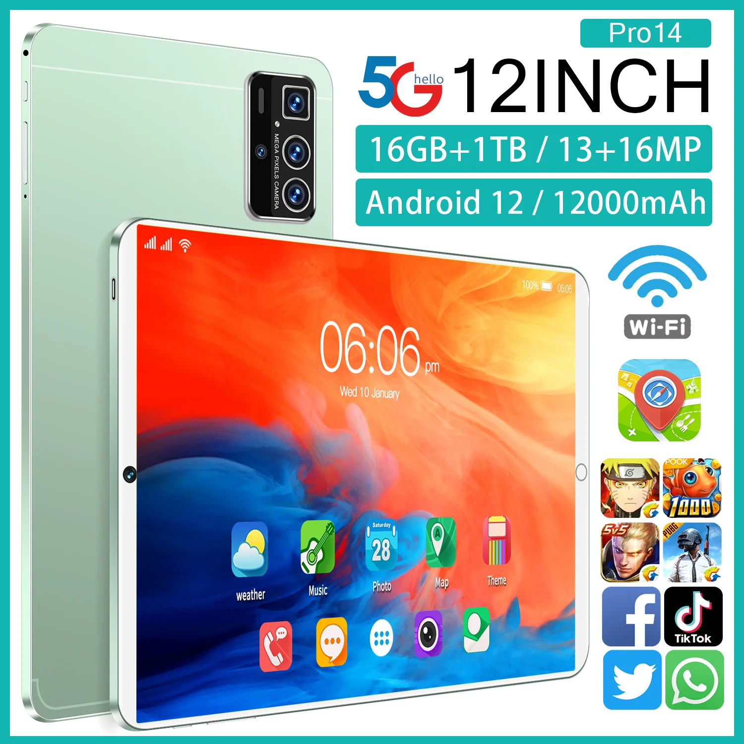 16GB+1TB Dual SIM Android Tablet 10.1 Inch Pro 14 Brand Educational Phone Call Feature