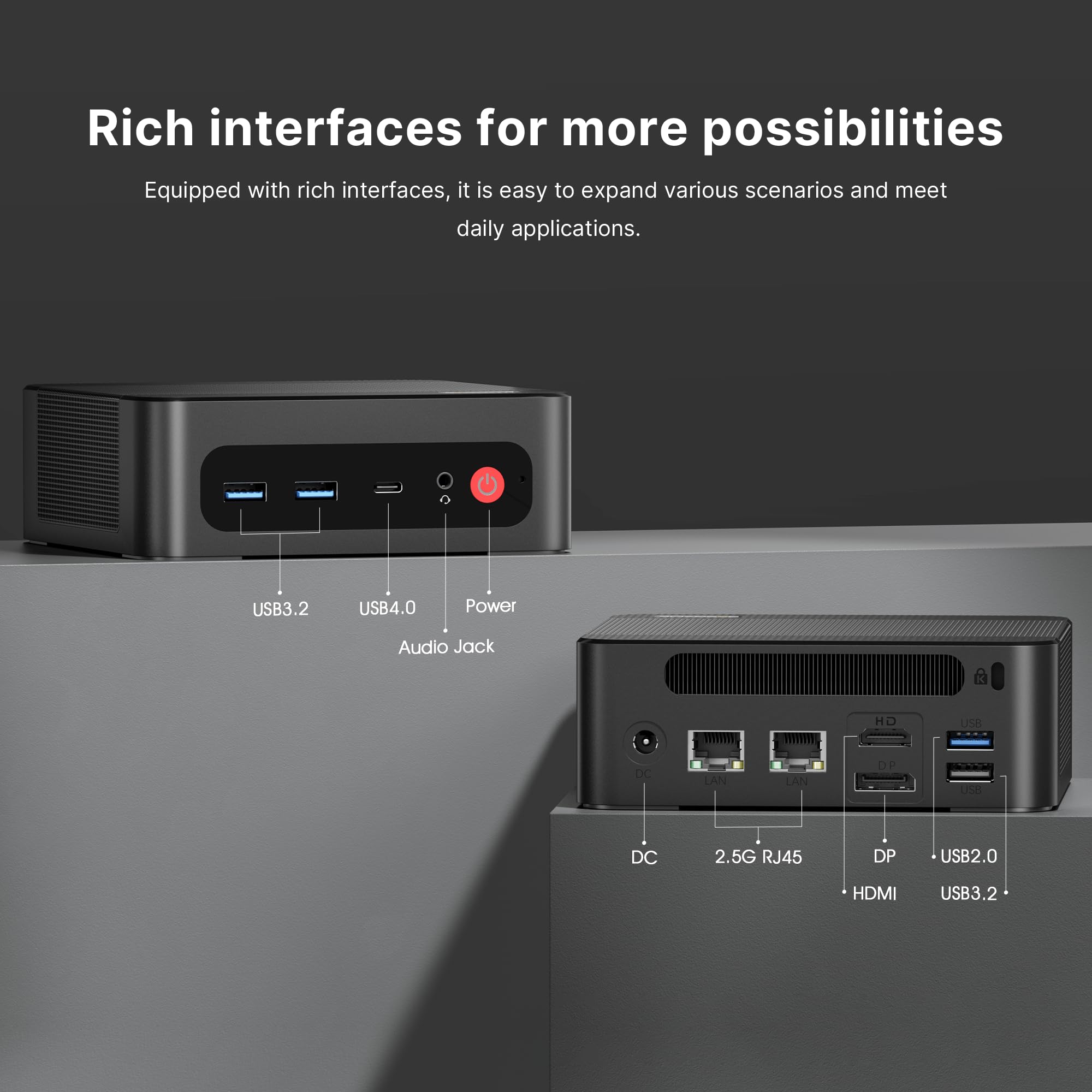 - 👍【Full-function USB4 Support 8K Display 】- The USB4 port has a rate of up to 40Gbps, allows for charging, driving multiple monitors, and connecting to external drives at blazing speeds. Combined with HDMI and DP ports, Bosgame mini desktop PC lets you take your productivity to the next level on an 8K display or on up to Triple 4K displays! Be ready to immerse yourself in gaming, media playback and all kinds of productivity tasks.