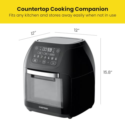 CHEFMAN Multifunctional Digital Air Fryer+ Rotisserie, Dehydrator, Convection Oven, 17 Touch Screen Presets Fry, Roast, Dehydrate, Bake, XL 10L Family Size, Auto Shutoff, Large Easy-View Window, Black