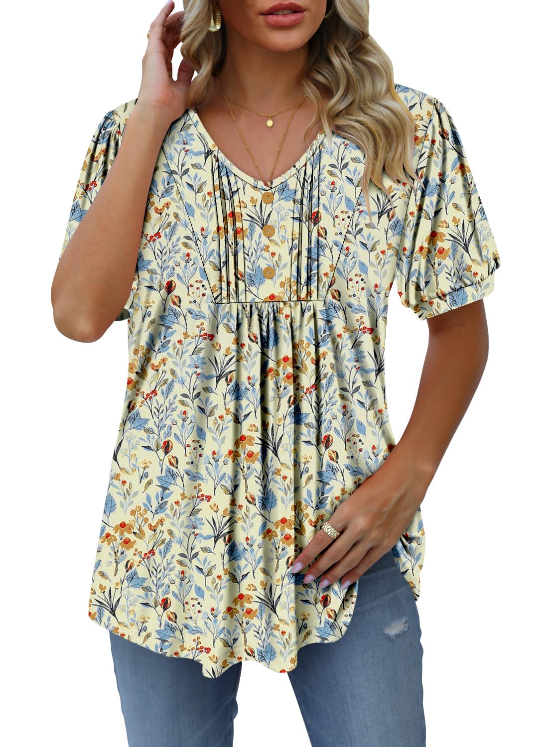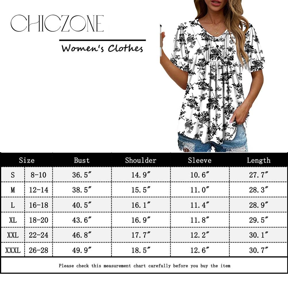CHICZONE Ladies Summer Tops Henley Shirts Ruffle Casual Dressy Ladies Short Sleeve Blouses for Leggings