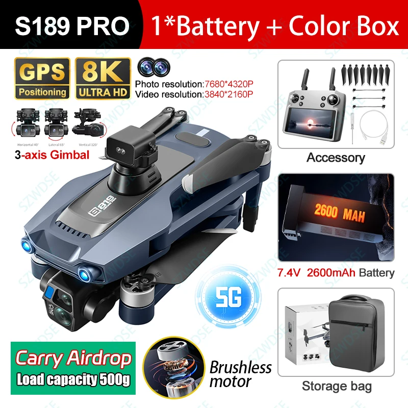 Drone Mini S819 3 Axis Gimbal 6KM GPS 8K Professional Camera Drones Brushless RC Toy Quadcopter for Travel Gifts PK Xiaomi dron Color : Blue