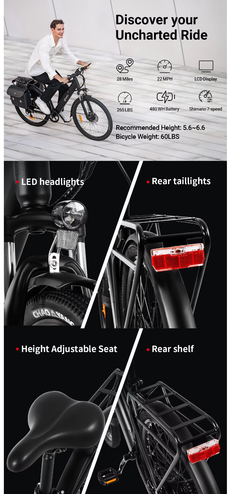 DYU C5 e-bike 27.5 Inch 48V 10Ah 7 Speed City road Mountain eBike Aluminum alloy full suspension Color: Black