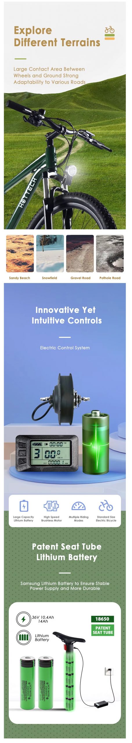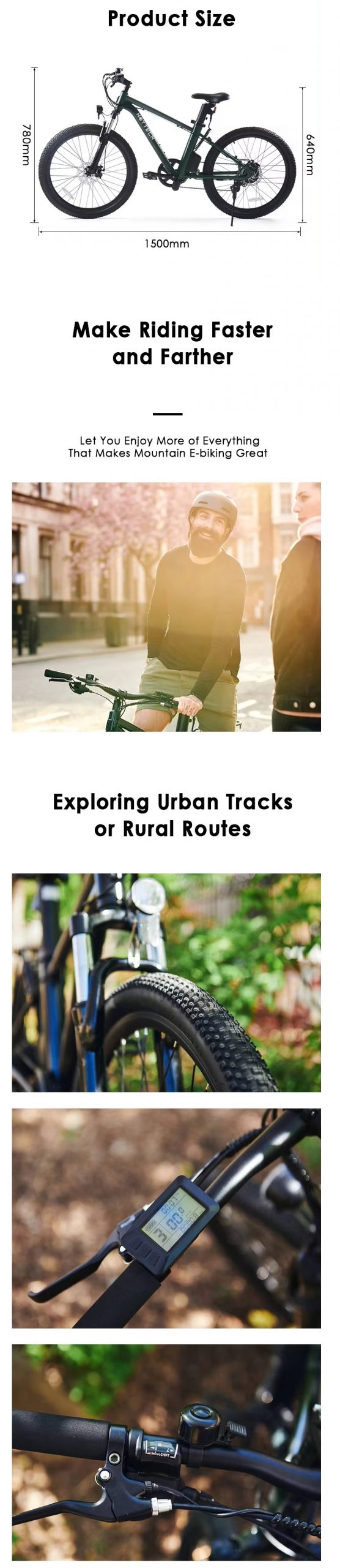 Ebike green power mountain hybrid bicycle 36V 14Ah electric dirt bike for men light e-bike
