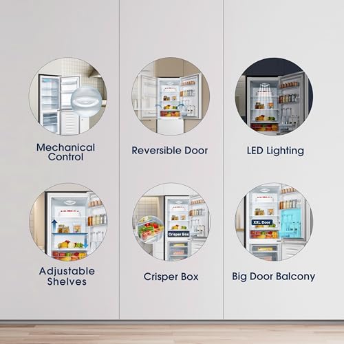 - Energy Class E, 195 kWh Annual Energy Consumption for a 175 litres fridge freezer