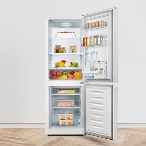 Fridgemaster MC50175A 50cm Freestanding 60/40 Fridge Freezer – 175-litre capacity with Crisper box – Reversible Door – LED Lighting- 4 Star Freezer Rating – White – E Rated
