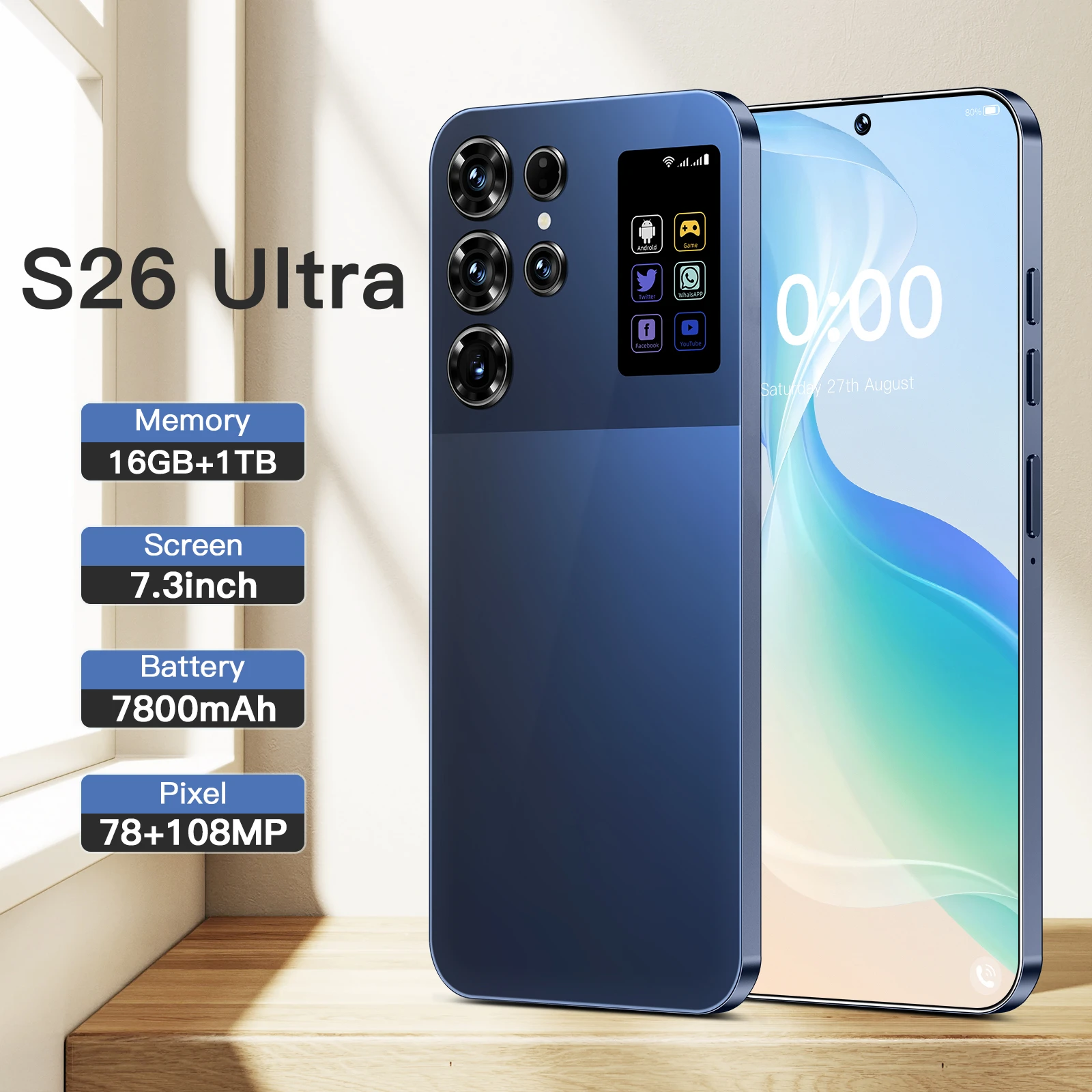 High End Galax S26 Ultra 16GB Smart Android Phone 7800mah 5G Dual SIM Dual Standby Unlocked Smartphone
