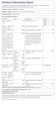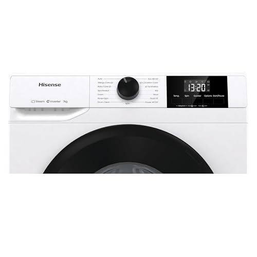 Hisense WF1G7021BW Freestanding 7 KG-Front Load Durable Inverter Washing Machine, Steam Wash-Quick Wash-15 Washing Programs-1200 RPM-White-Energy Rating B