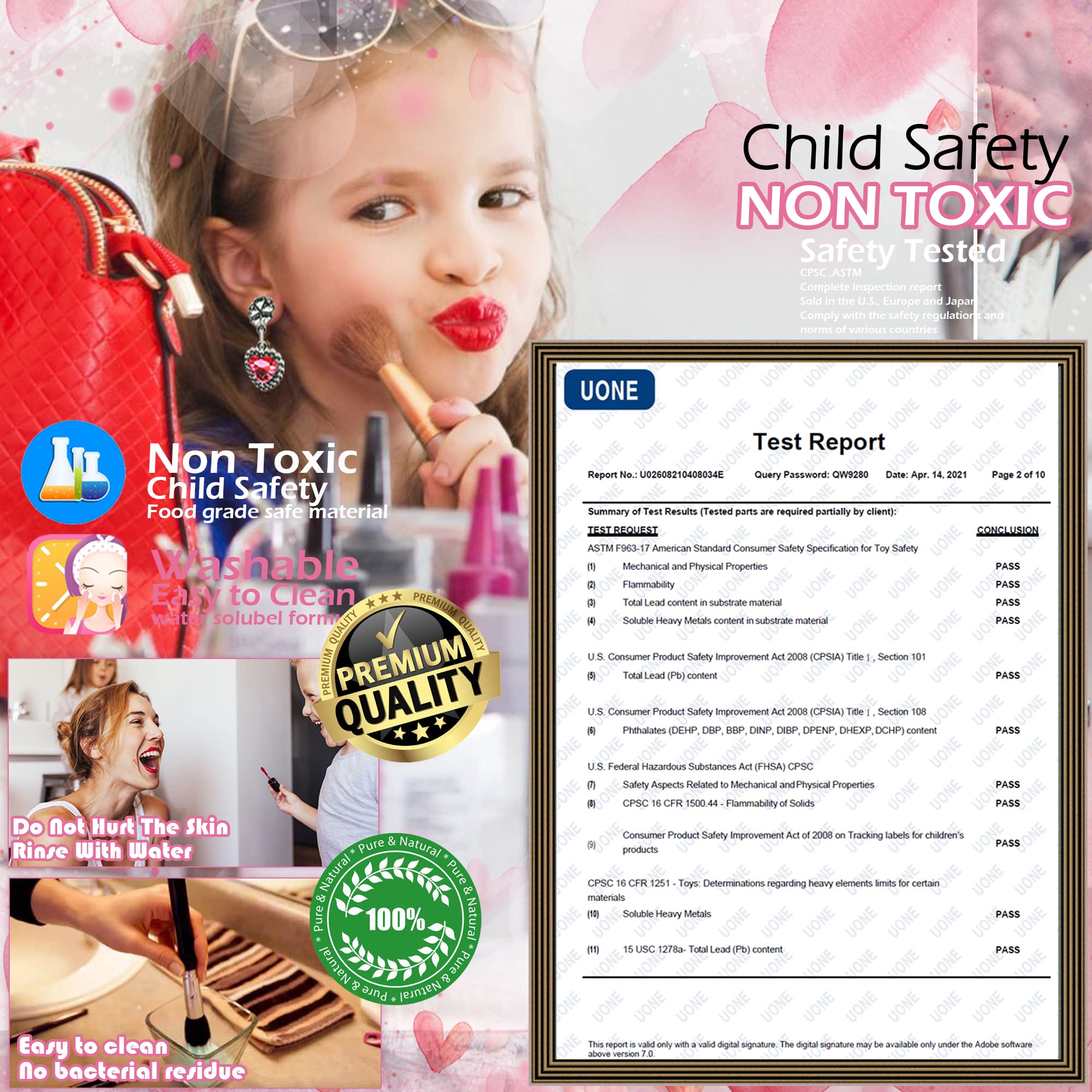 - 💟Washable and Non-toxic Kids Make Up – As a child’s toy, safety must be the most important. ROKKES girls make up are safe for kids, non toxic, child friendly and easy to wash off using soap and water, or gentle baby wipes. We think this is every little girl’s dream to put make up on like their mom. This girl make up set can make their little dreams come true!