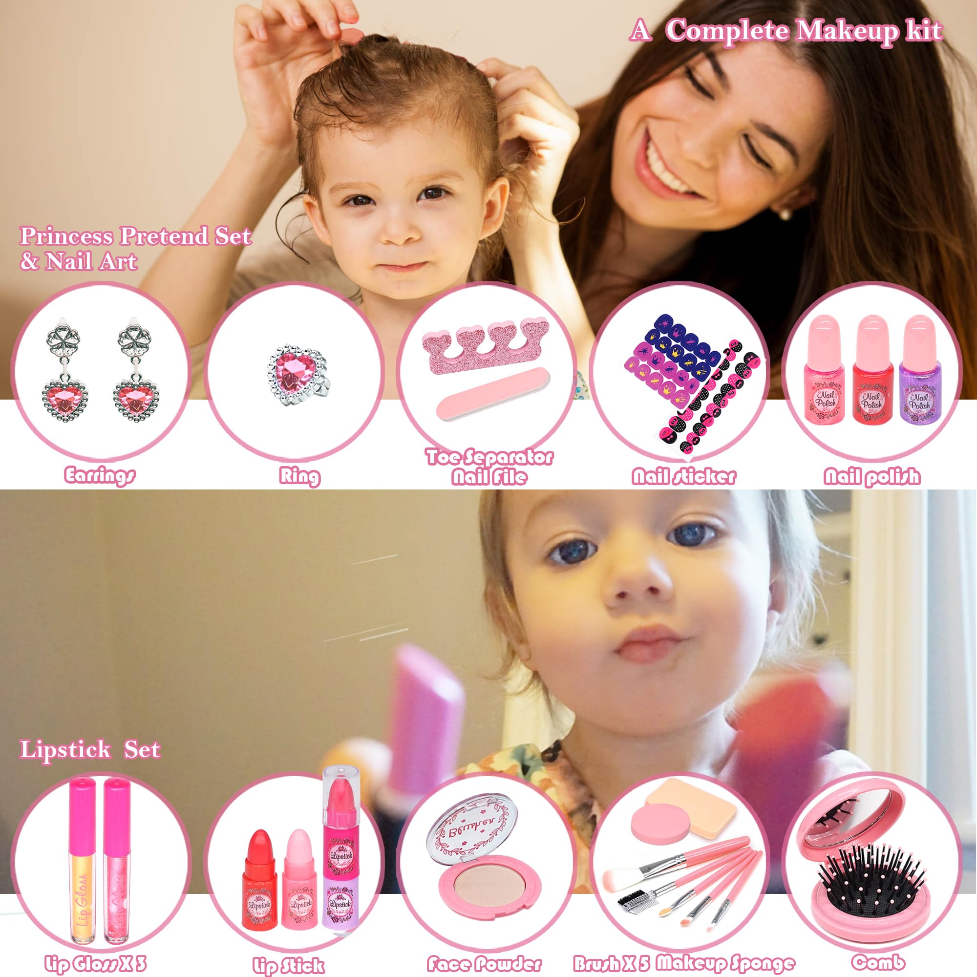 Kids Makeup Sets for Girls – 54 PCS Girls Toys, Washable Makeup for Children, Girls Make Up Set 4-12, Play Make Up for Kids Little Girls Princess, Birthday for girls (Pink)