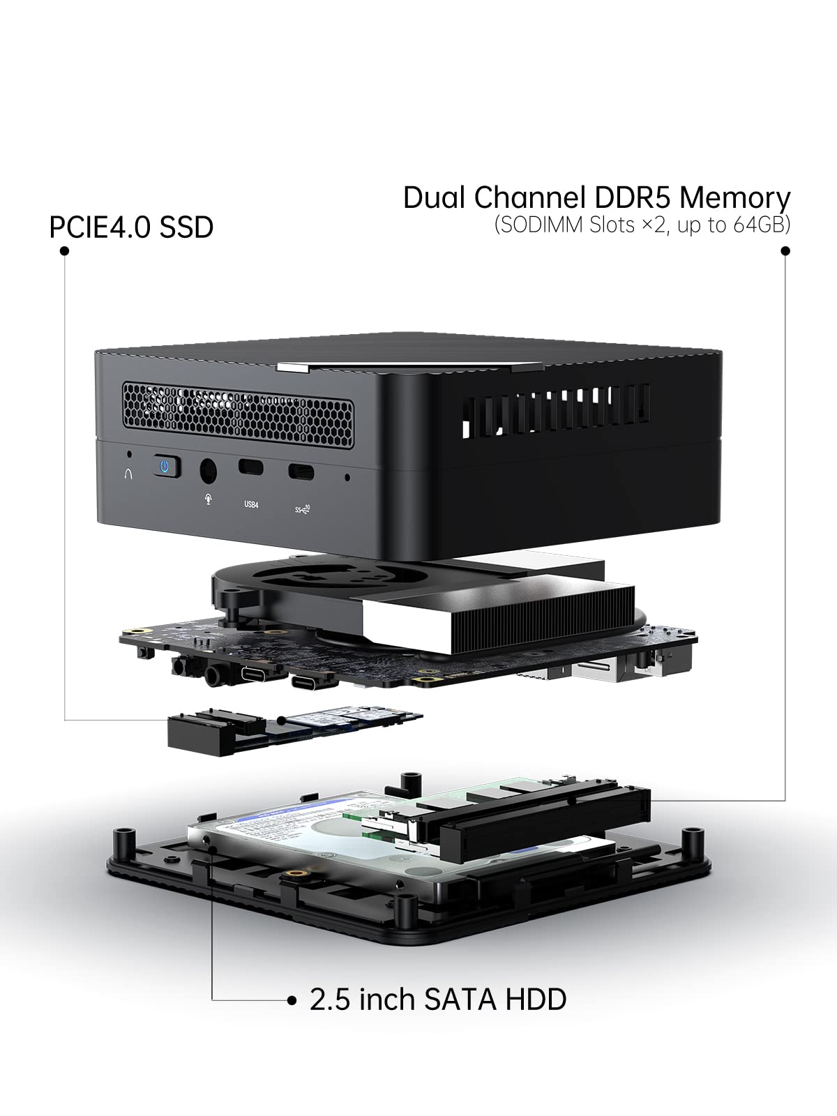 - 【DDR5 RAM & PCIe4.0 SSD】Installed with dual channel DDR5 32GB RAM(2x16GB), UM773 Lite mini pc support expansion to 64GB RAM. Featured with M.2 2280 1TB PCIe4.0 SSD, UM773 Lite has the ability to mount an older generation SATA SSD or HDD (2.5 inch) and doesn’t consume much.