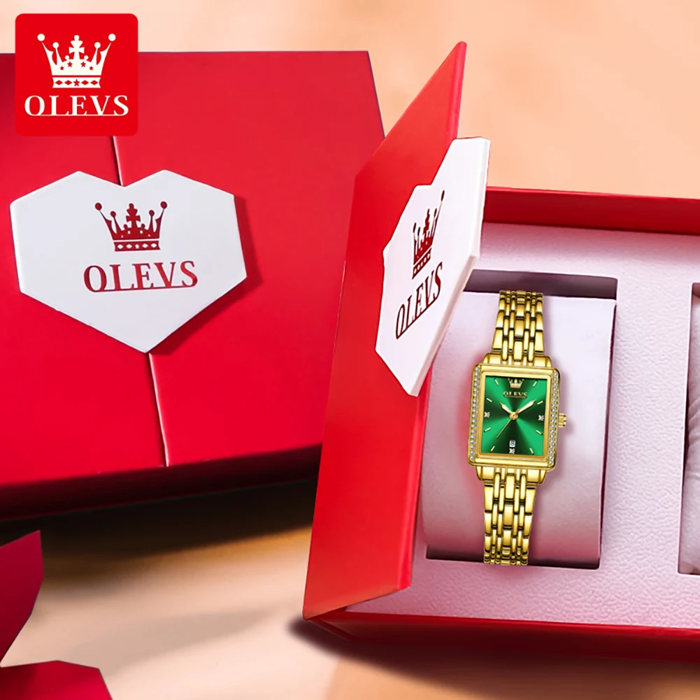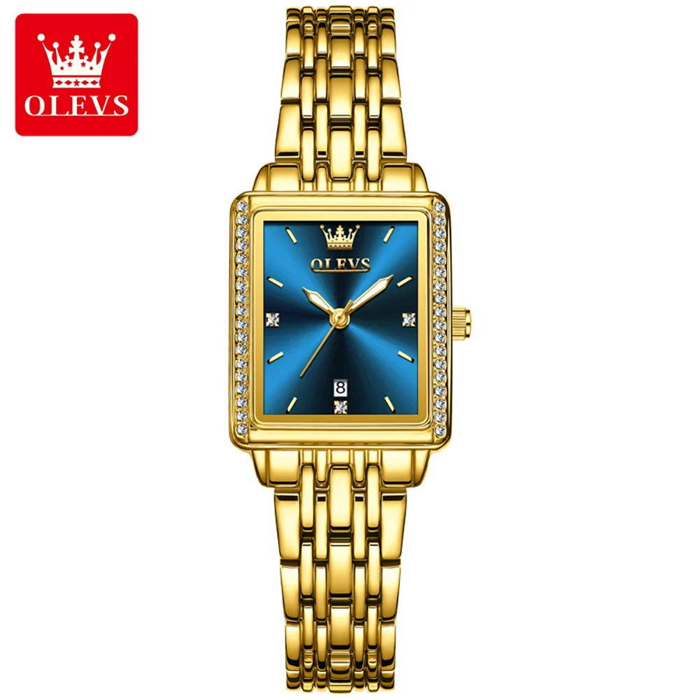 OLEVS Original Square Quartz Watch for Women Auto Date Clock Waterproof Elegant Ladies Wristwatch Simple Retro Women’s Watches