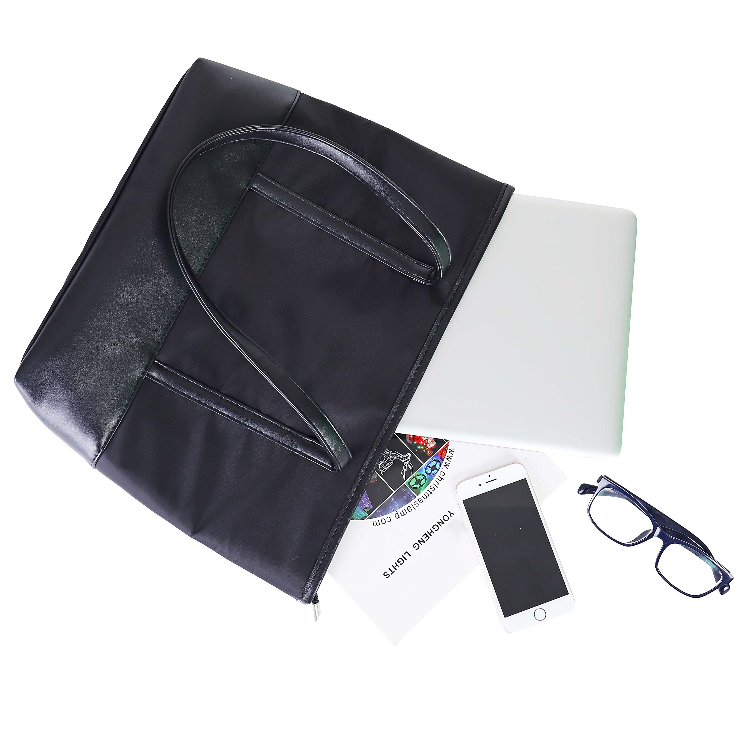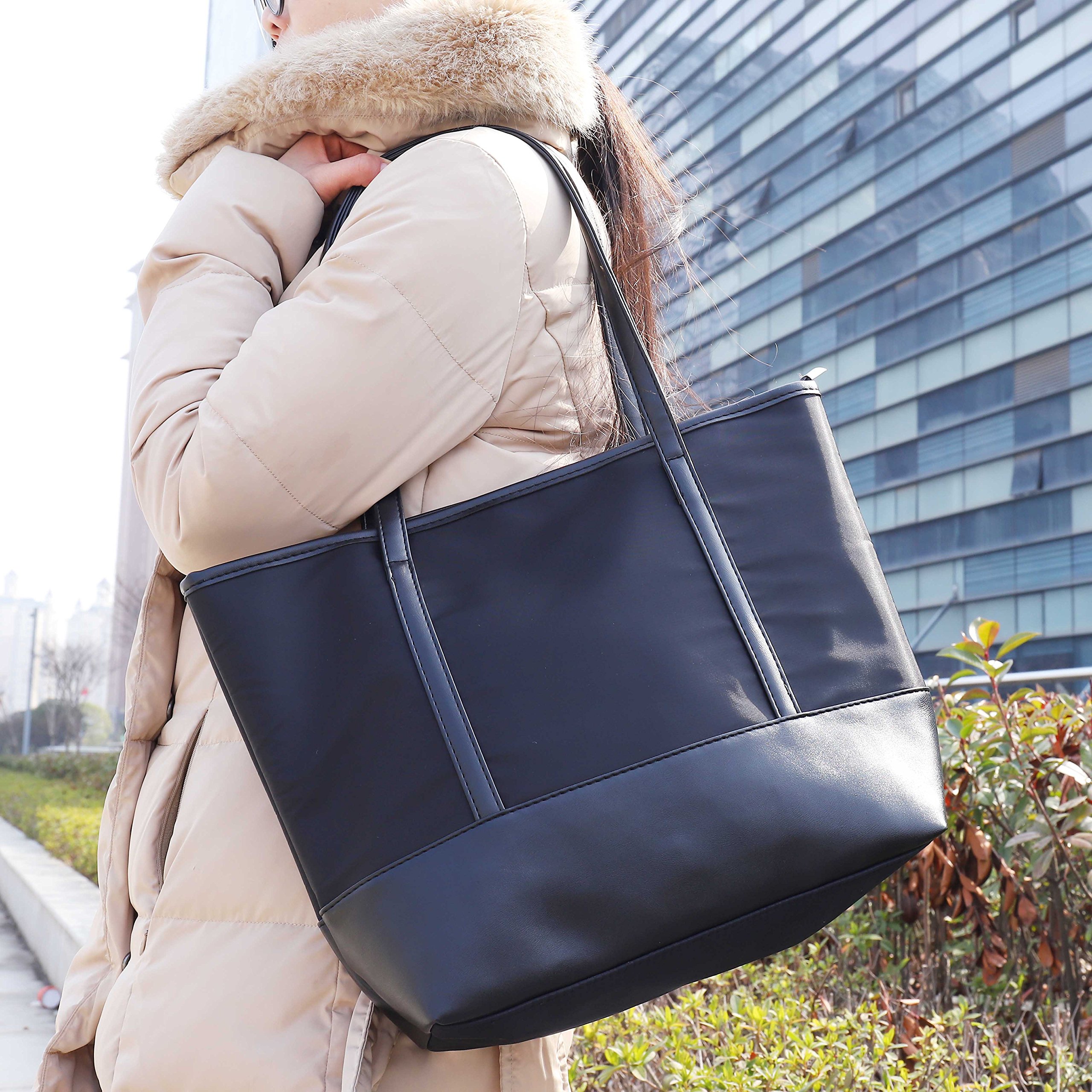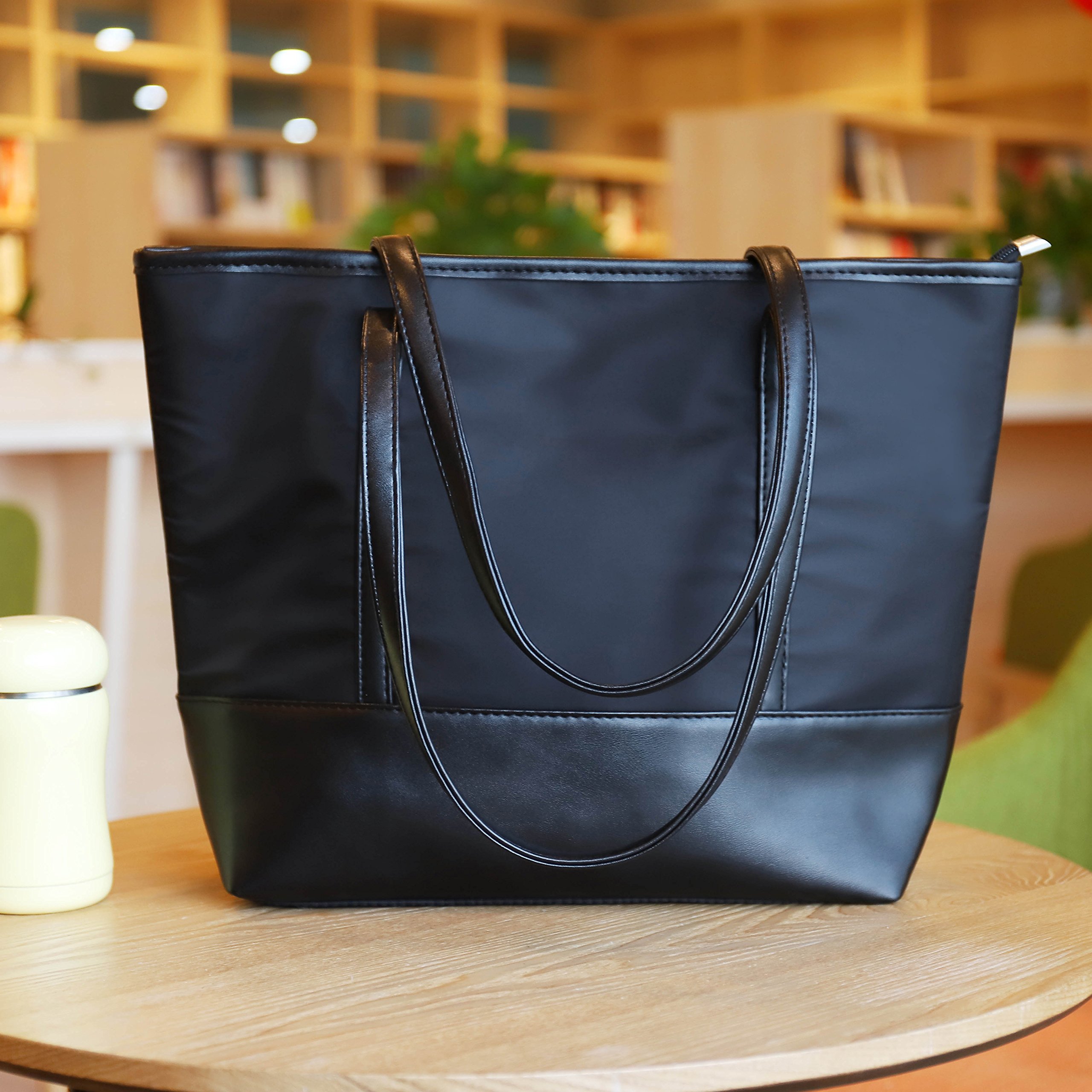 QH-Shop Tote Bag, Beach Bag Splash Water Proof Nylon PU Stitching Handbag Large Capacity Women Girls Shoulder Bag for School Work Travel Shopping Black