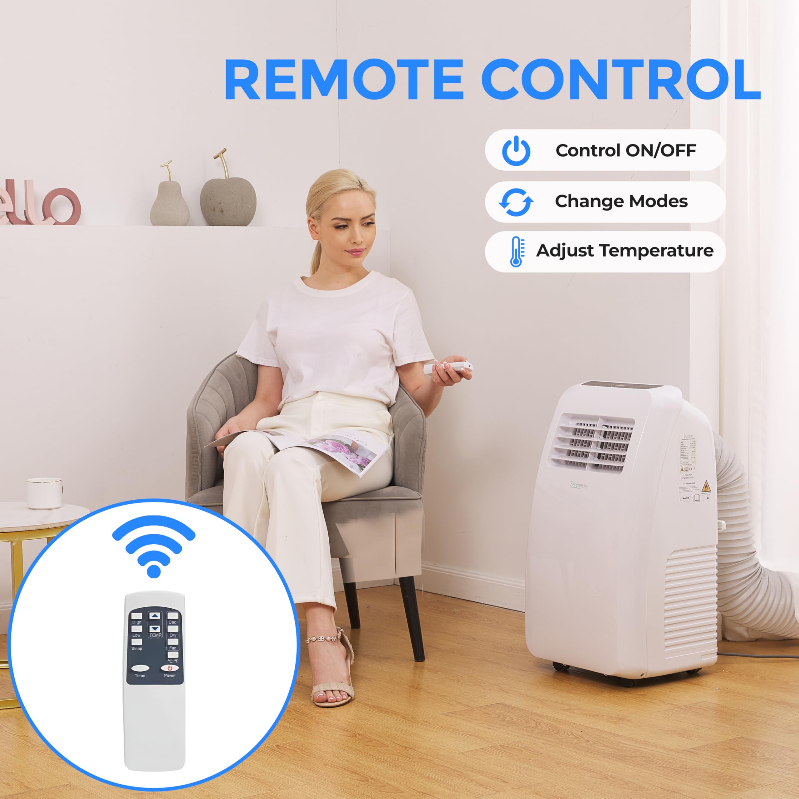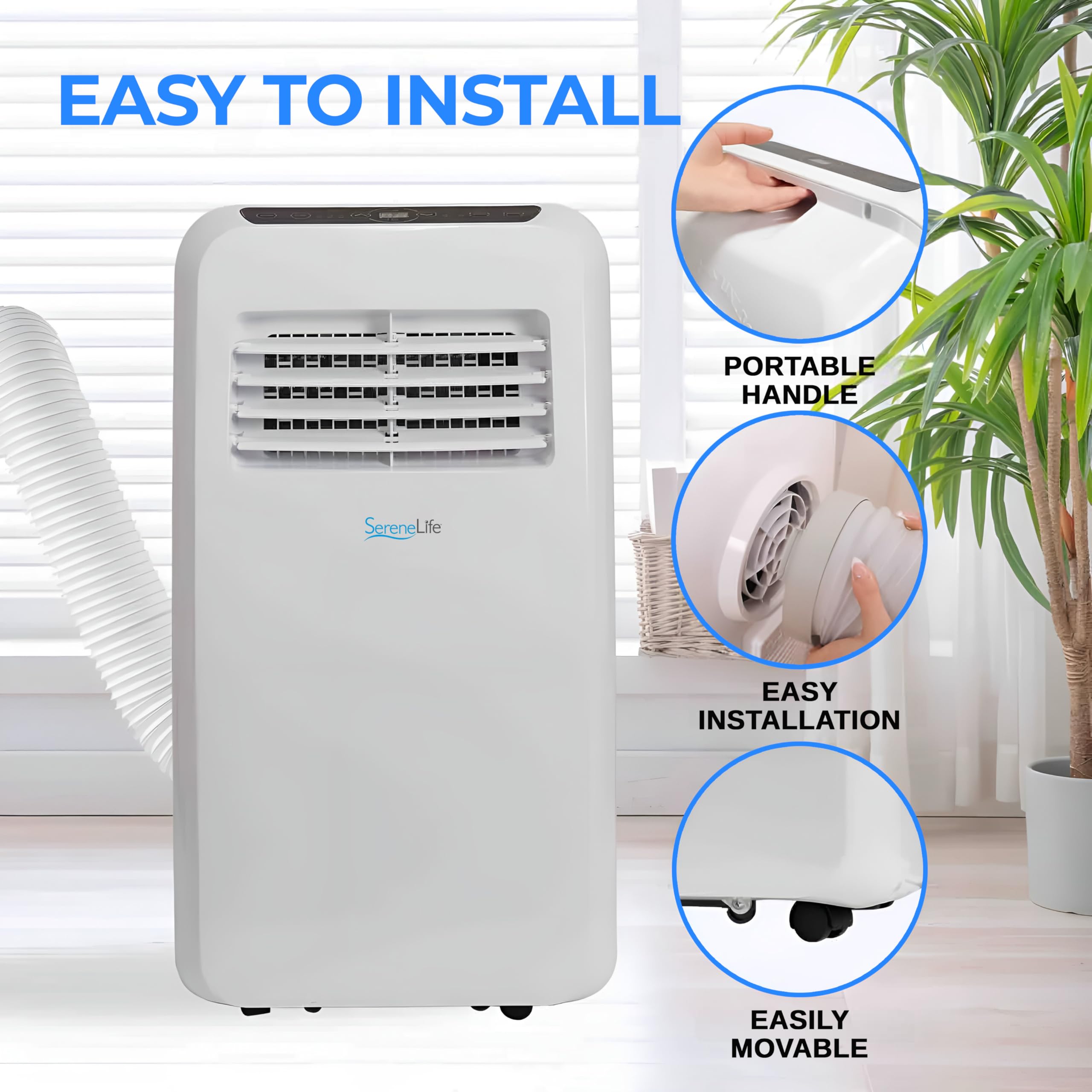 SereneLife Portable Air Conditioner 7,000 BTU with Remote, Dehumidifier, Cooler & Fan Modes, 230W, 100 Liter, Low Noise Motor, Ideal for Home, Office, School & Business Rooms