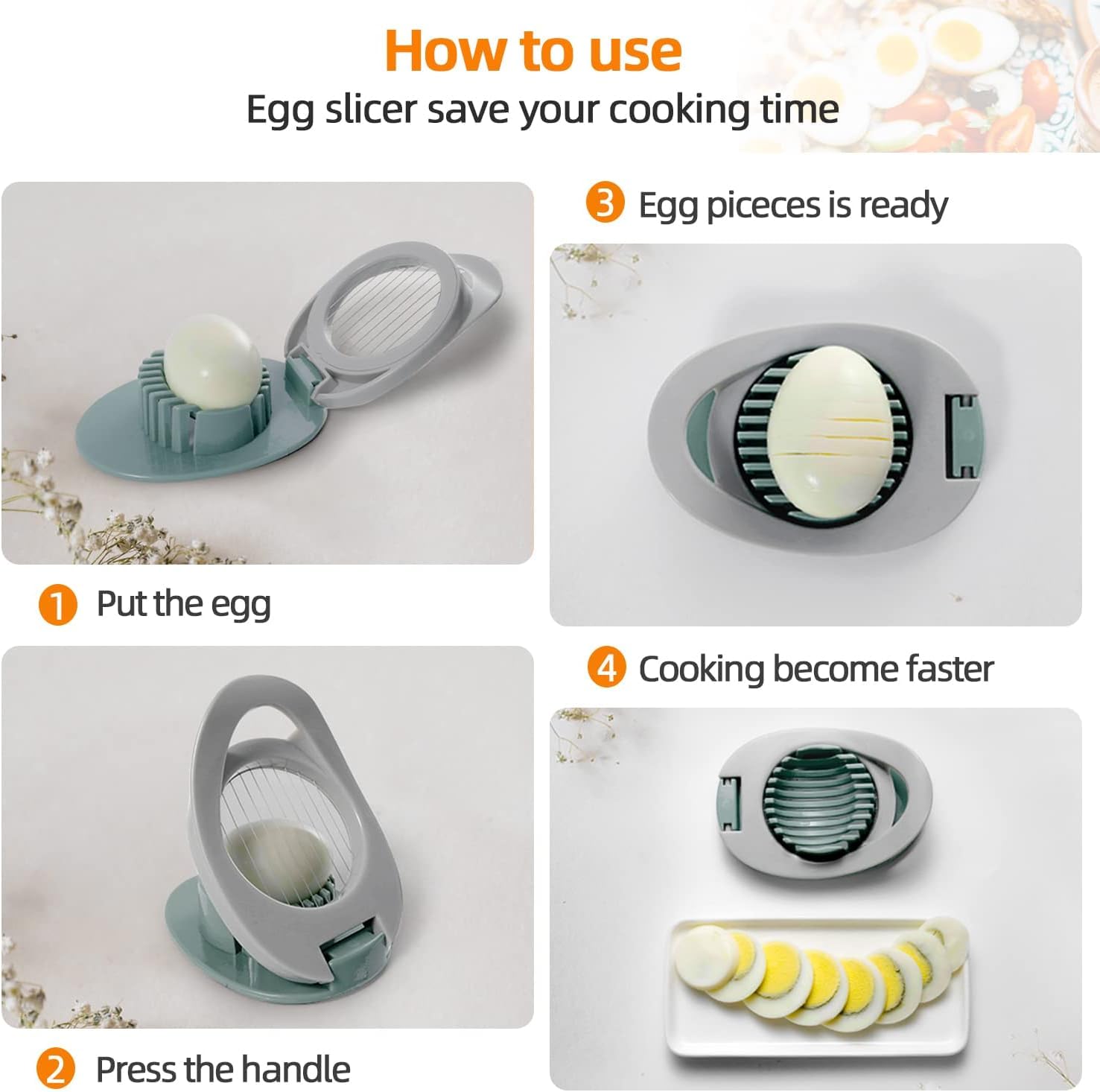 - 14 in 1 Multifunction This product contains 8 freely interchangeable blades for large or small dice, thick or thin slices, shredded or julienne. An egg separator to easily separate egg whites from yolks