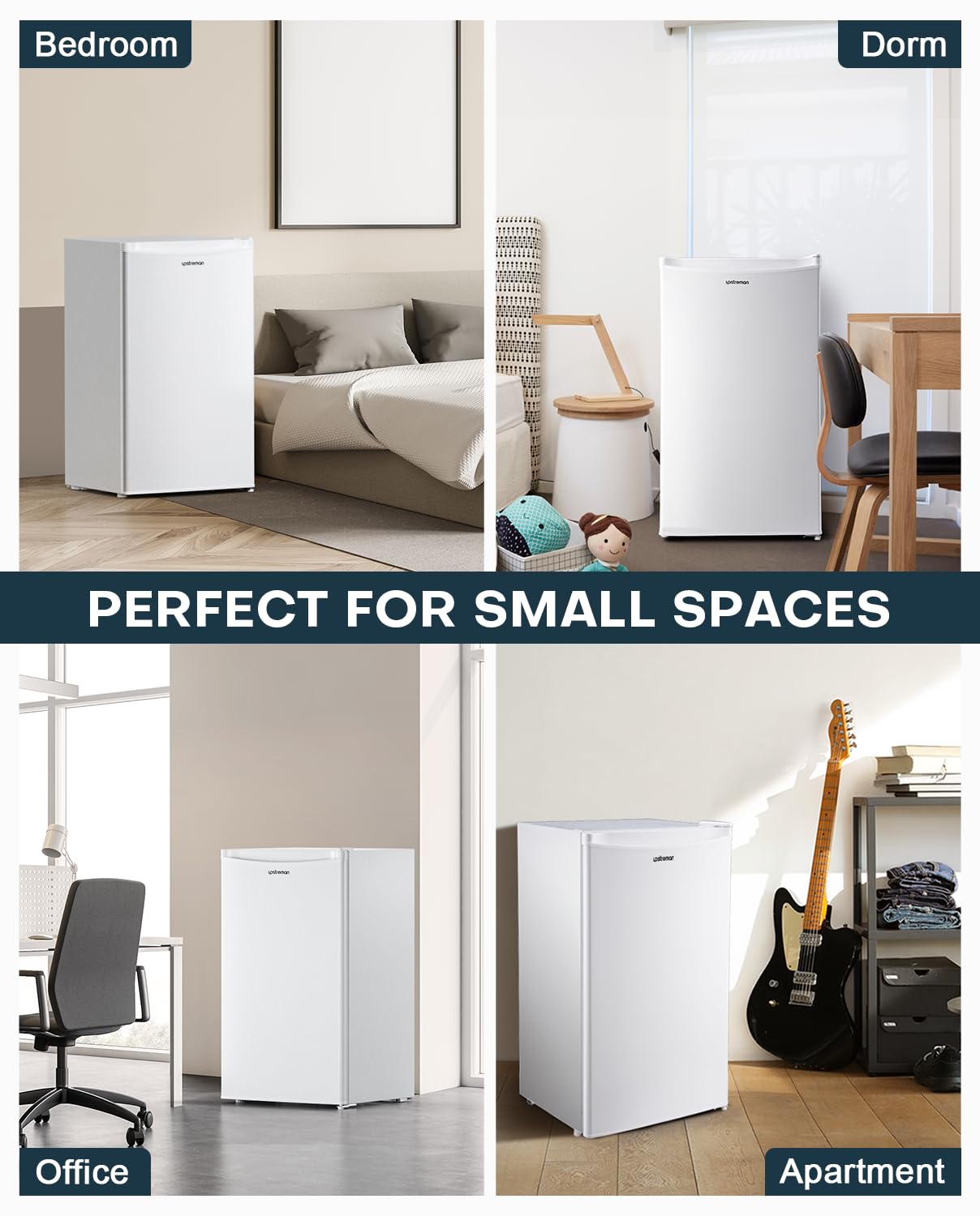 - Adaptable Design:Engineered with flexibility, this under counter fridge features a reversible door and adjustable legs. Measuring just 48cm wide, it seamlessly fits into small kitchens, dorm rooms, or offices, making it a top choice for compact spaces