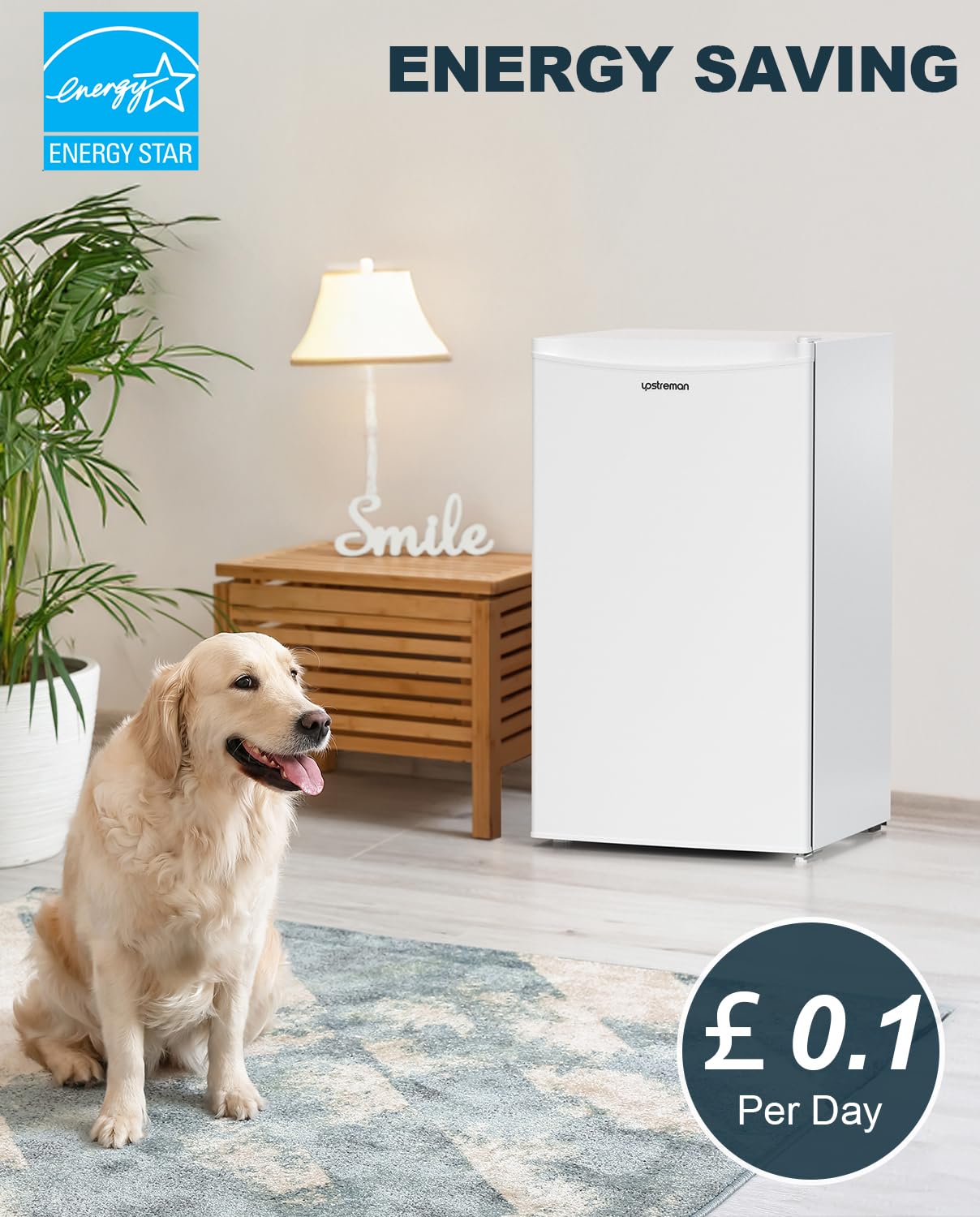 Upstreman 91L Under Counter Fridge with Chiller Box, Single Door Small Fridge, Adjustable Thermostat, Mini Refrigerator for Bedroom, Office, Dorm, BR321 (White)