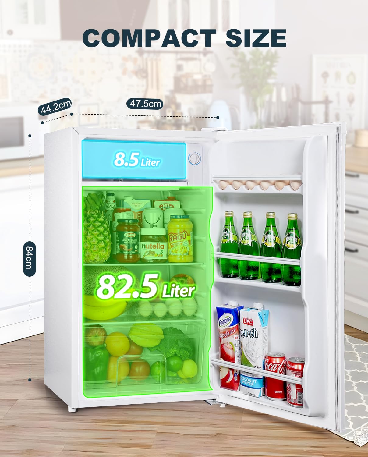 - Precise Temperature Control:Five-level manual adjustment (1-8°C) on this compact mini fridge caters to diverse storage needs. Ideal for dairy, vegetables, and more—dial in the perfect setting for lasting freshness. Note: freezer temp adapts accordingly