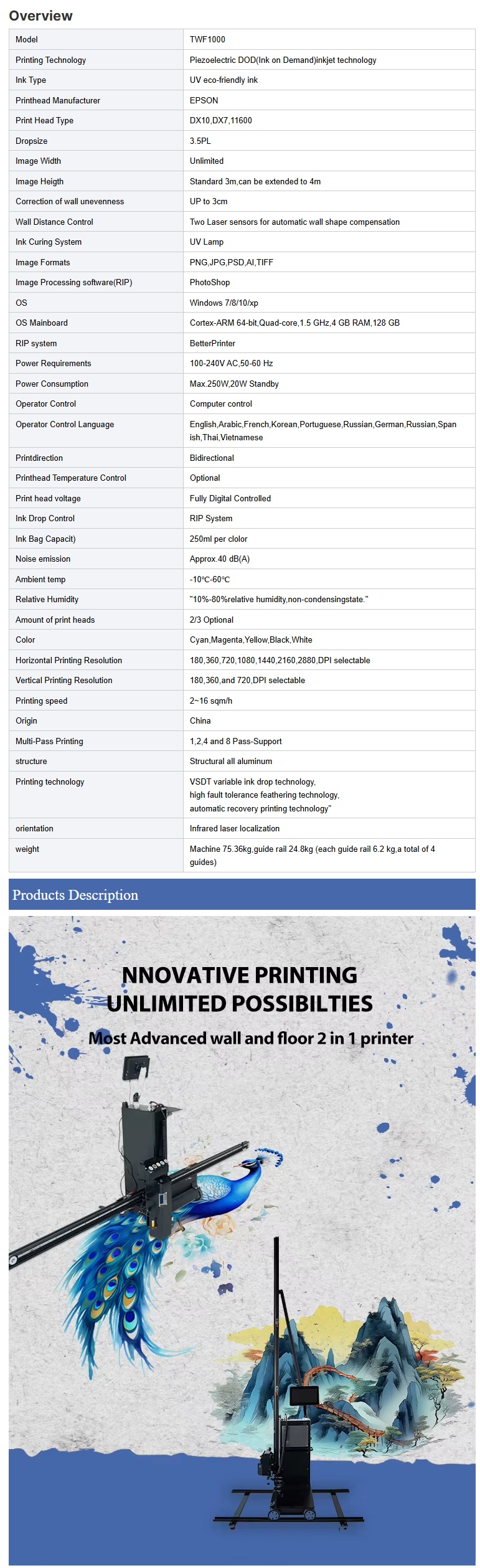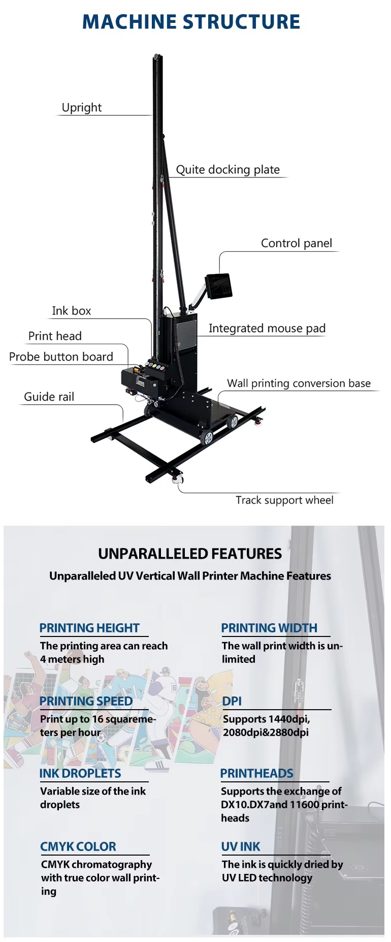 Wall Printer Machine and Floor Printing Machine FR-03 2 In 1 Printer for Glass Wood Ceramic Brick Print 3D 4D or 5D visuals art on walls.